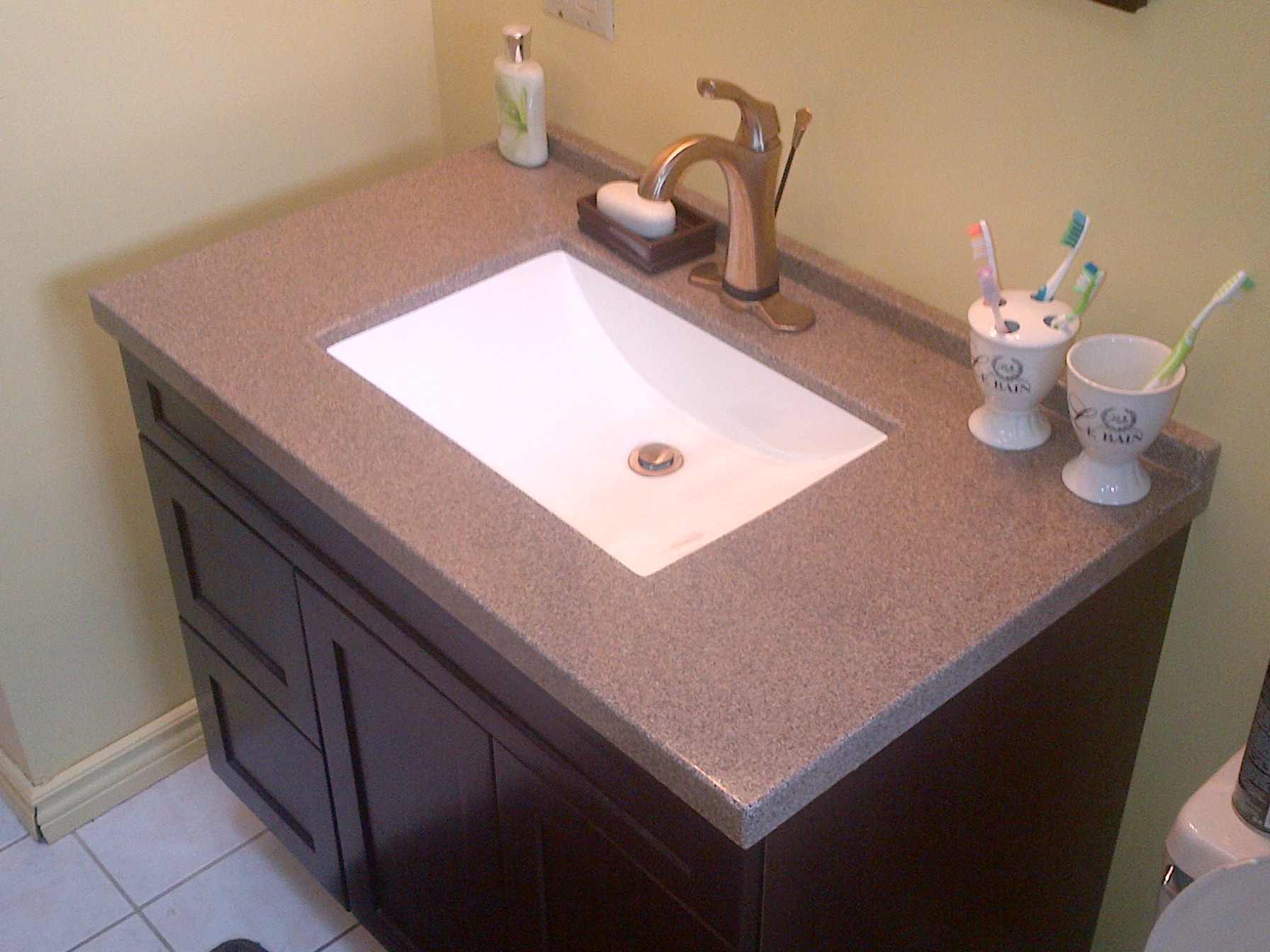 Aside from the dog thinking we were making her casket, the installation of both the cabinet and counter top were seamless. Now the big job (or so we thought). Installing the Addison Single Handle Lavatory Faucet with Touch2O.xt Technology was surprisingly simple with the step-by-step instructions.