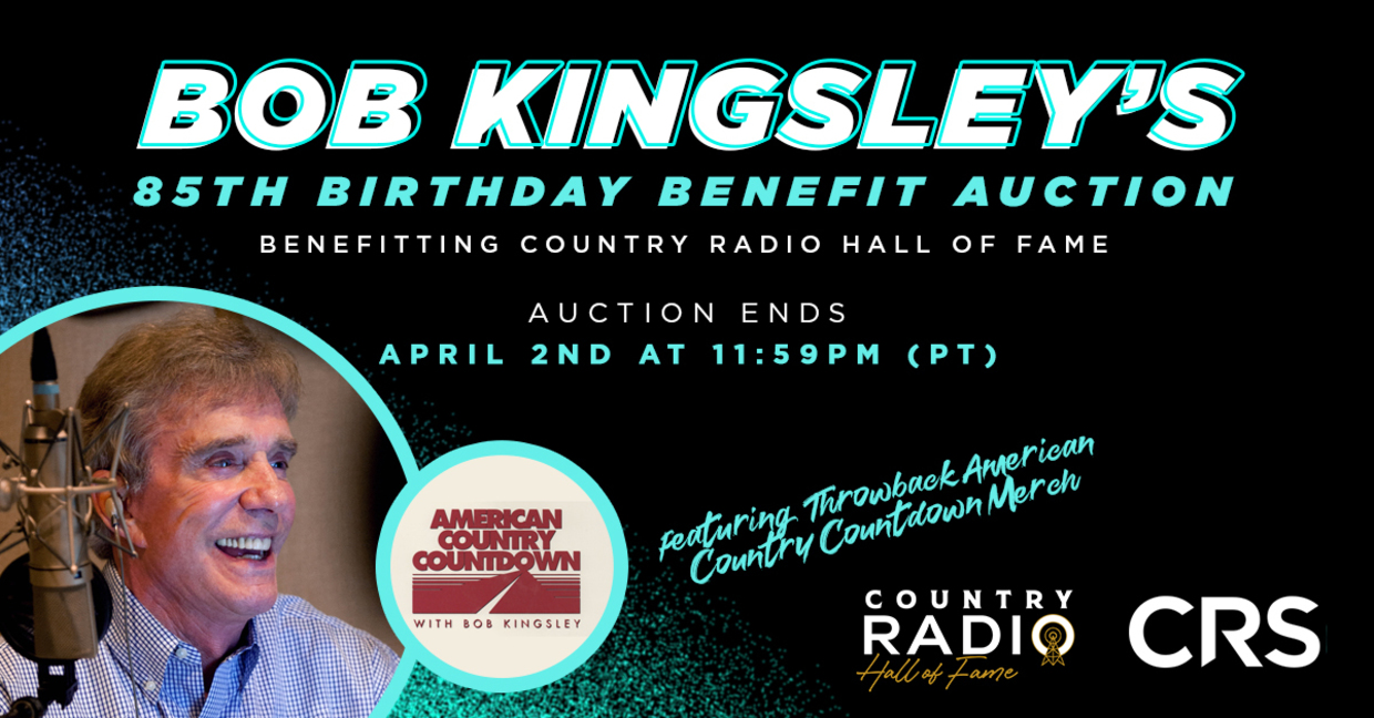 Country Radio Broadcasters (CRB) announces a special memorial auction event commemorating what would have been the 85th birthday of the late national radio personality Bob Kingsley. The auction is now LIVE here. Additionally, a limited quantity of retro Bob Kingsley merchandise is available here.